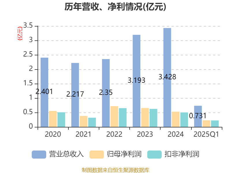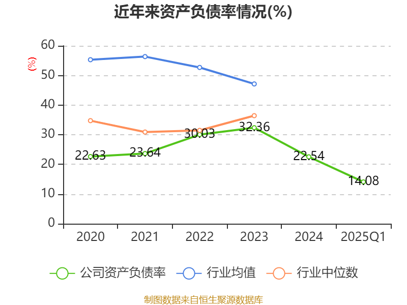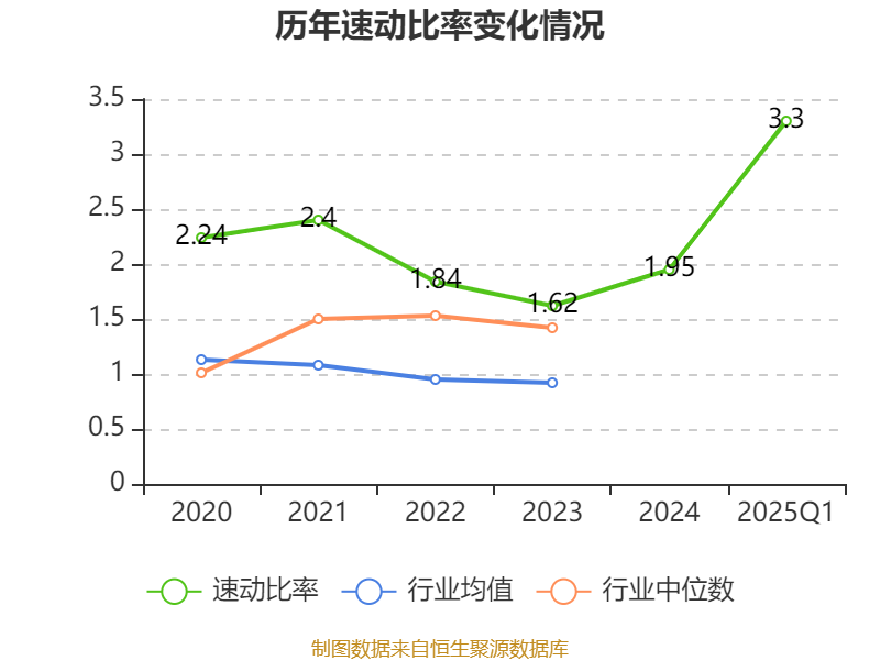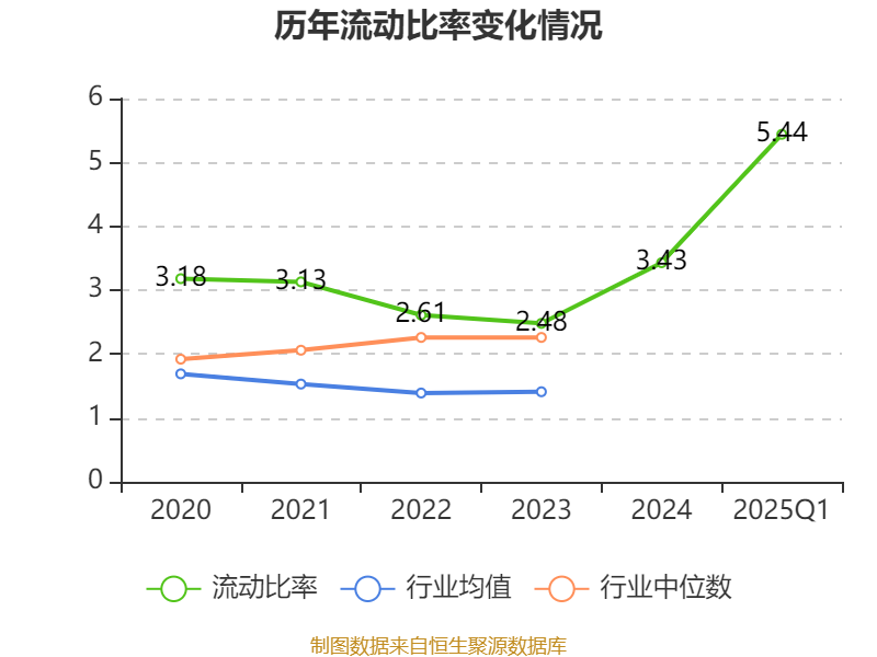 2025年第一季度,公司流动比率为5.44,速动比率为3.3。