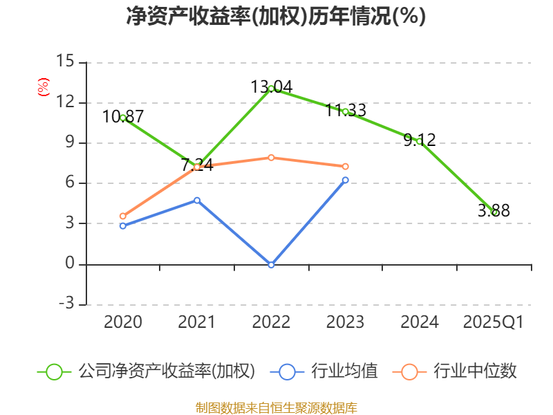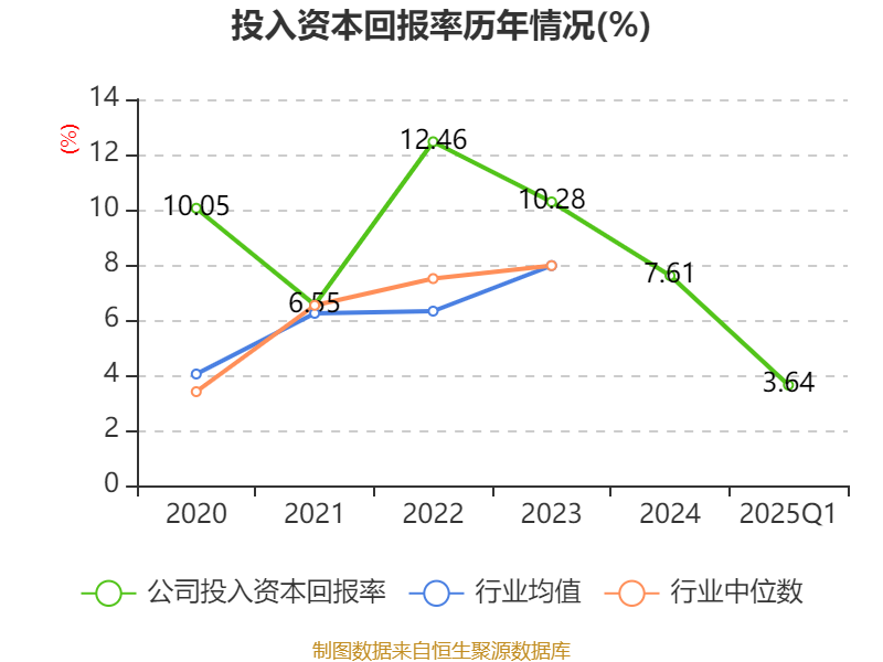 盈利能力方面, 2025年一季度公司加权平均净资产收益率为3.88%,同比下降1.91个百分点。公司2025年第一季度投入资本回报率为3.64%,较上年同期下降1.24个百分点。