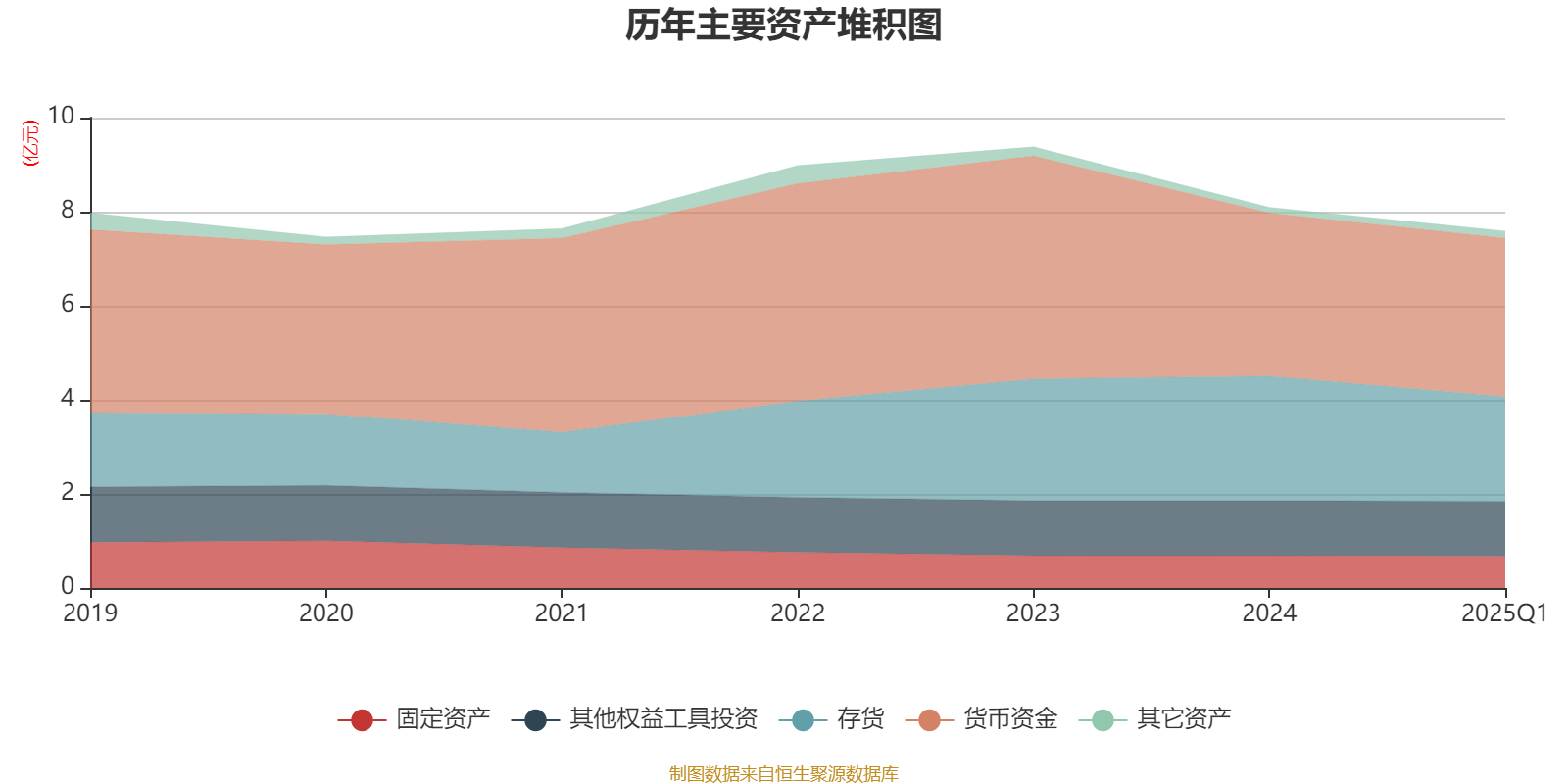 资产重大变化方面,截至2025年一季度末,公司存货较上年末减少16.13%,占公司总资产比重下降3.45个百分点;货币资金较上年末减少2.76%,占公司总资产比重上升1.59个百分点;其他权益工具投资较上年末没有变化,占公司总资产比重上升0.96个百分点;预付款项较上年末增加114.05%,占公司总资产比重上升0.45个百分点。