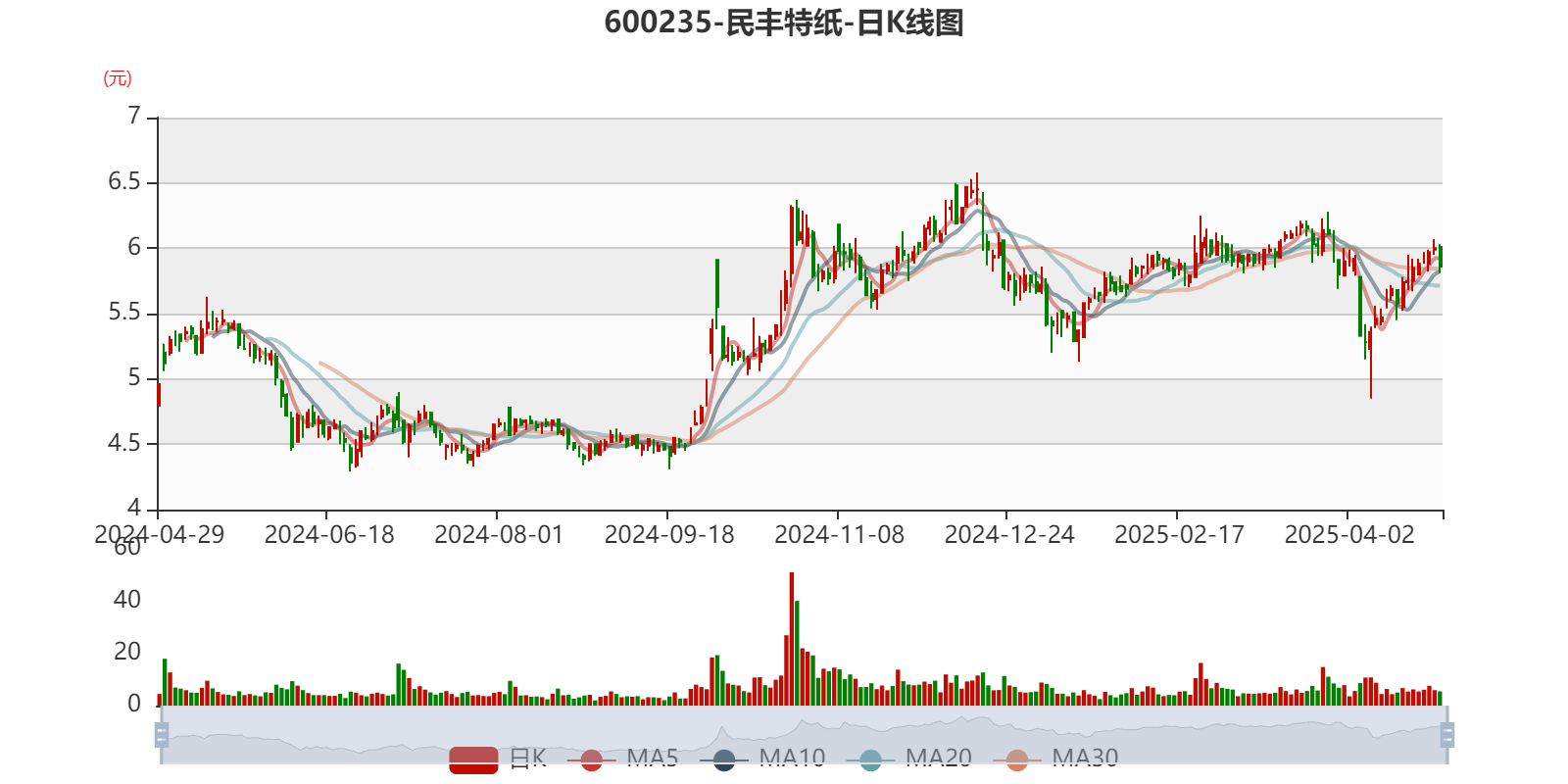 以4月28日收盘价计算,民丰特纸目前市盈率(TTM)约为46.09倍,市净率(LF)约1.37倍,市销率(TTM)约1.49倍。