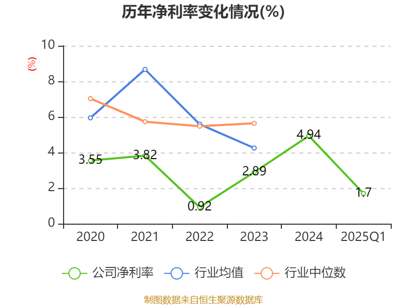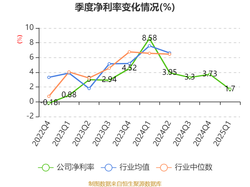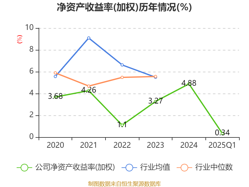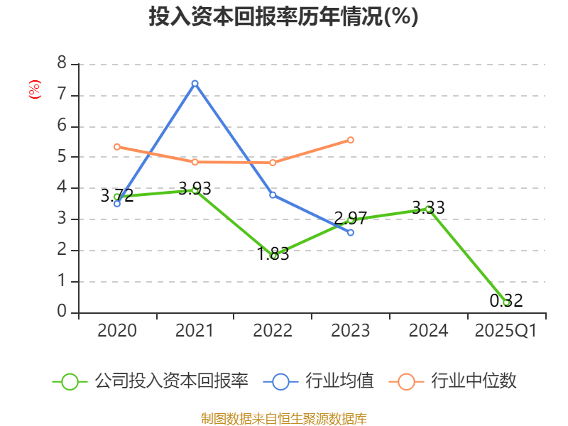 盈利能力方面, 2025年一季度公司加权平均净资产收益率为0.34%,同比下降1.87个百分点。公司2025年第一季度投入资本回报率为0.32%,较上年同期下降1.05个百分点。