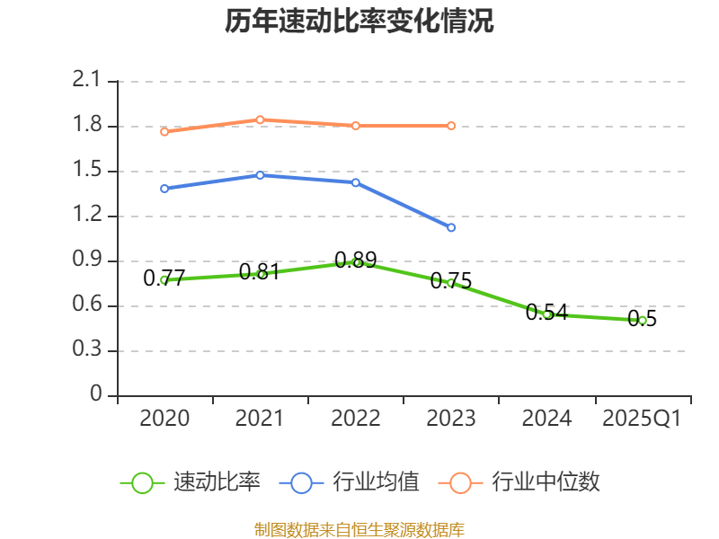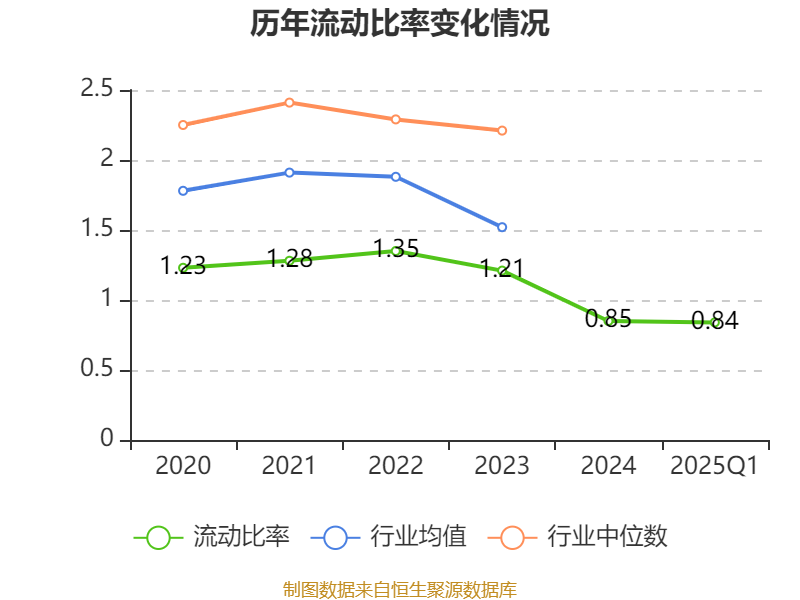 2025年第一季度,公司流动比率为0.84,速动比率为0.5。
