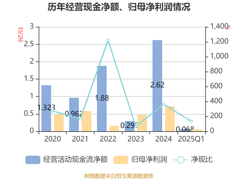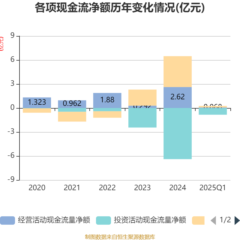 截至2025年一季度末,公司经营活动现金流净额为681.08万元东启网,同比下降82.7%;筹资活动现金流净额1900.25万元,同比减少1.18亿元;投资活动现金流净额-8397.31万元,上年同期为-1.47亿元。