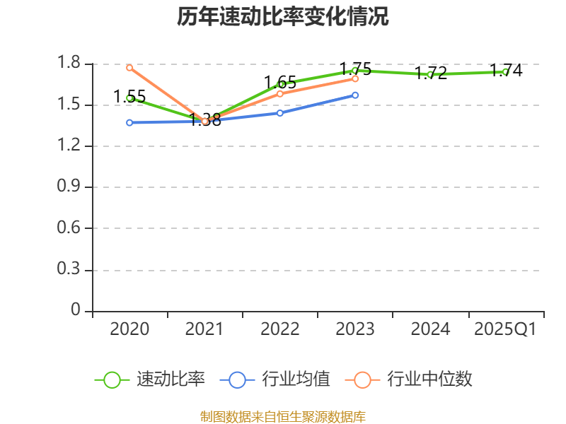 2025年第一季度,公司流动比率为2.07,速动比率为1.74。