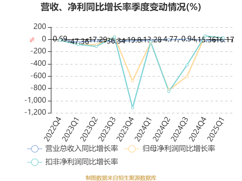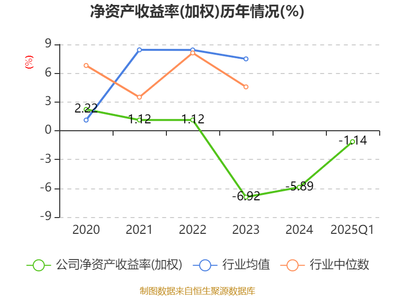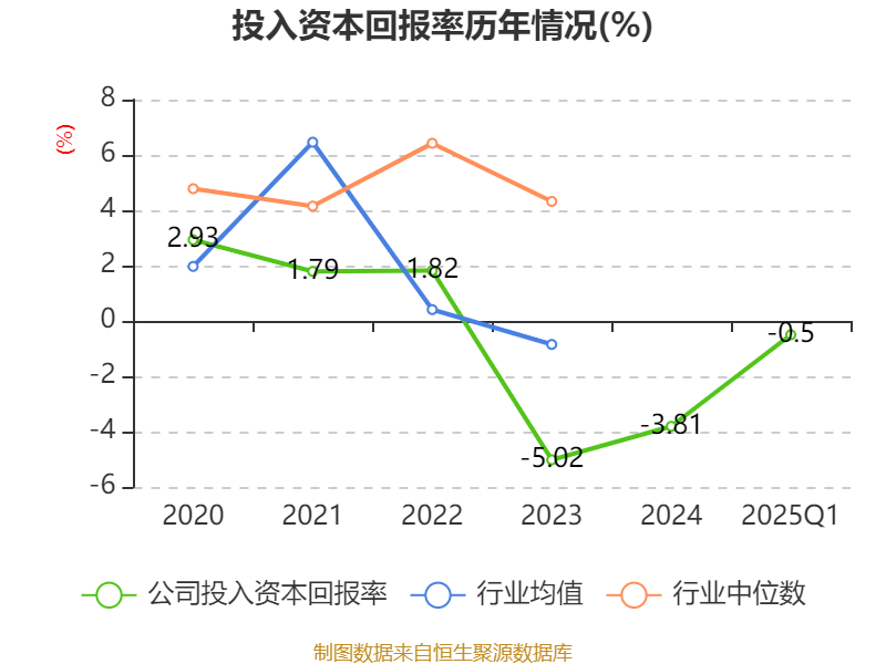 盈利能力方面, 2025年一季度公司加权平均净资产收益率为-1.14%,同比下降0.04个百分点。公司2025年第一季度投入资本回报率为-0.5%,较上年同期上升0.38个百分点。