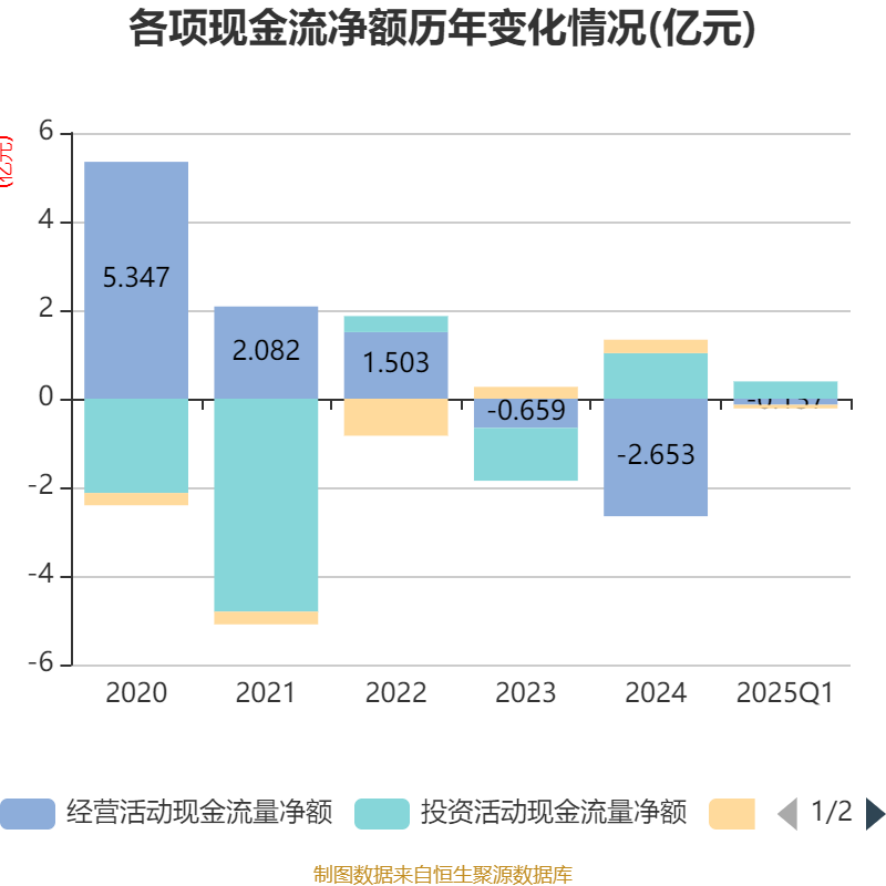 截至2025年一季度末中祥配资,公司经营活动现金流净额为-1370.77万元,同比增加927.96万元;筹资活动现金流净额-820.46万元,同比减少243.5万元;投资活动现金流净额3898.66万元,上年同期为2.31亿元。
